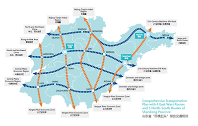 “十四五”期間,山東將基本建成互聯(lián)互通的基礎(chǔ)設(shè)施主骨架。其中包括“一軸兩廊十通道”的大通道基本形成,“1+2+4+4+N”的大樞紐加快構(gòu)建。